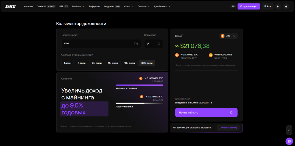 | EMCD | 1.5% | 6–7 | FPPS+ | Полная | Русский интерфейс, P2P‑обмен, Telegram‑бот |