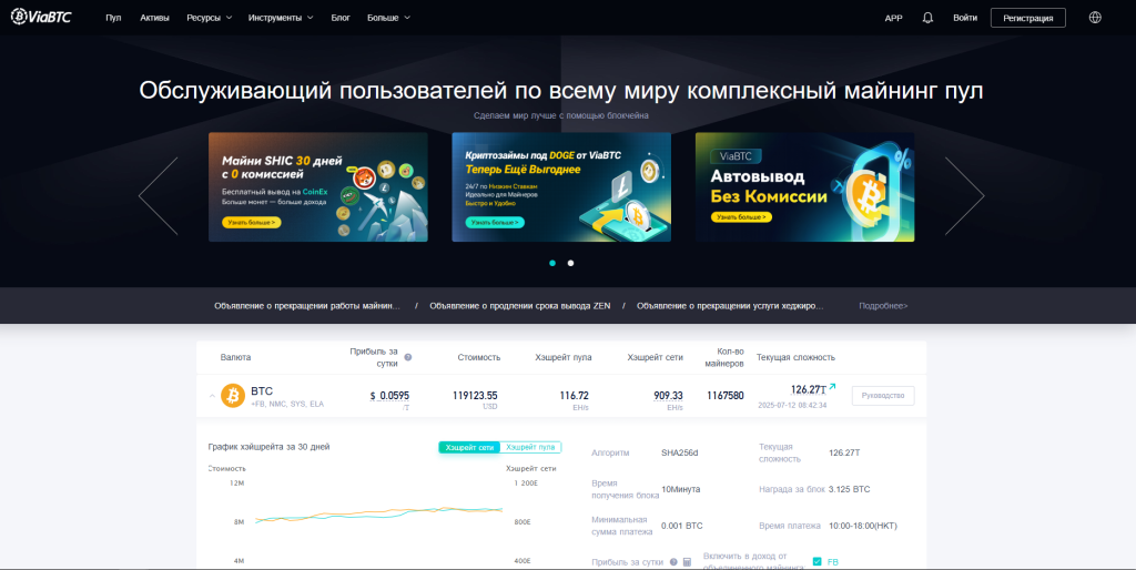 Если вы ищете гибкий и функциональный пул с богатым инструментарием, то ViaBTC — очевидный выбор. Он обеспечивает не только добычу, но и удобное управление, конвертацию, аналитику и автоматизацию. Особенно выгоден для тех, кто майнит не только биткоин, но и альткоины.
