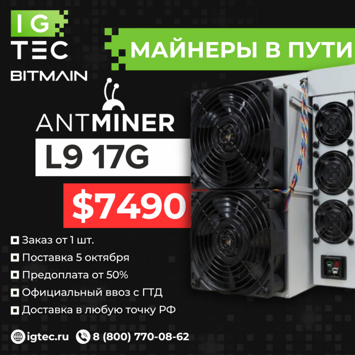 Специальное предложение на Antminer L9, которые уже находятся в пути на наш склад IGTEC в Москве!